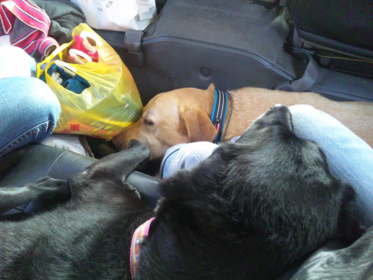 帰りの車、お疲れな犬々・・・