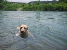 「オデ、川でも泳げるよ。」