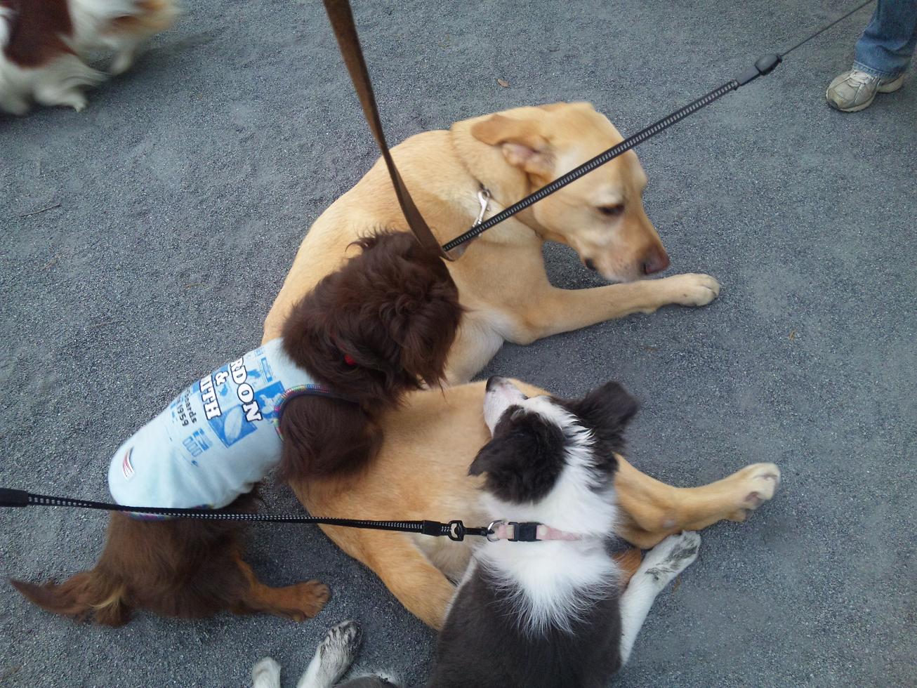 黒柴パピーをガン見する、恐ろしくデカイ黄ラブくんの姿が載ってます・笑