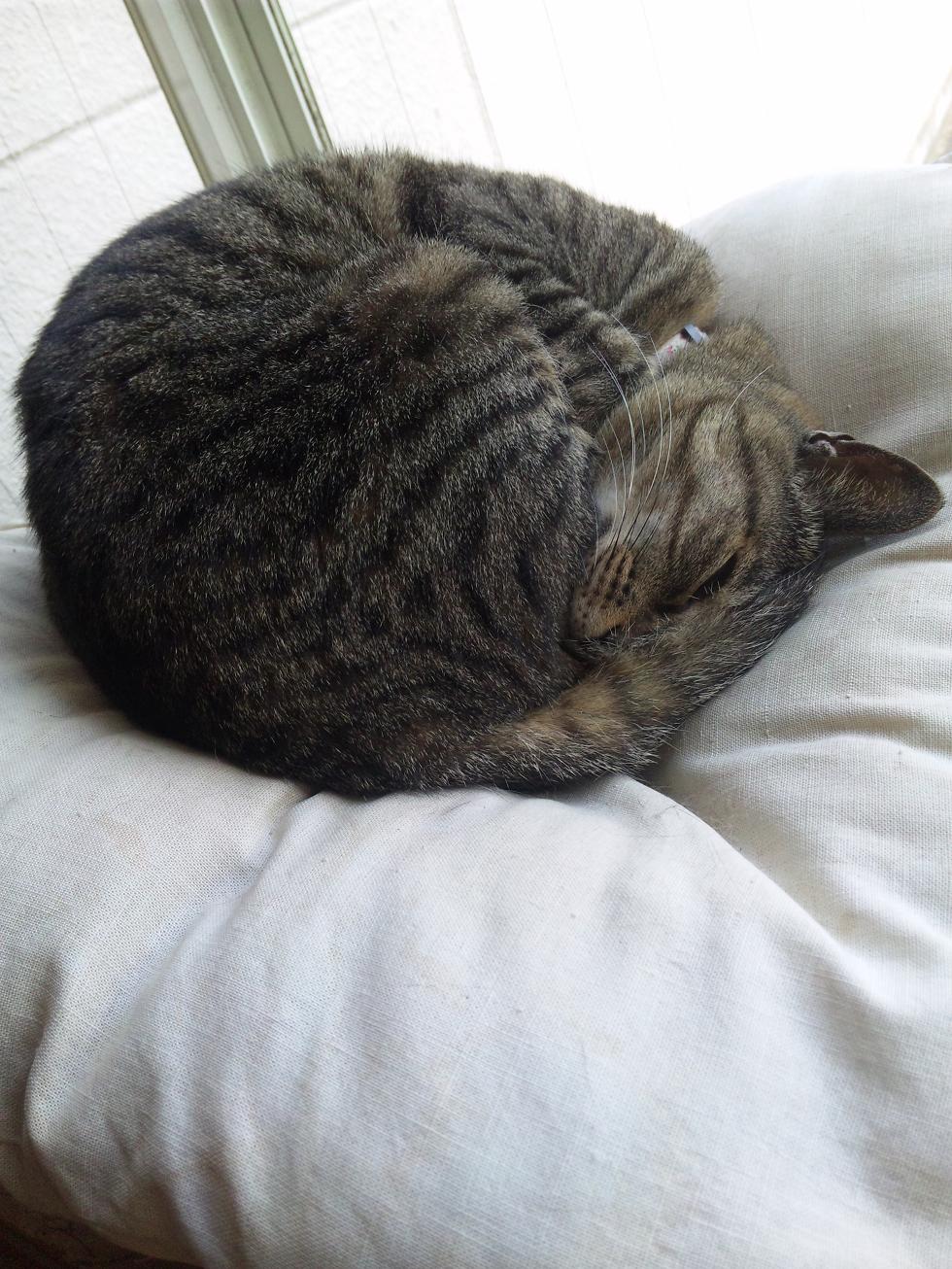 街路樹の植え込みで「みぃーみぃー」泣いてたキジトラを拾ってちょうど8年!