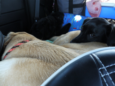 帰りの車では、アルのおしりを枕にひなが寝てたーーーー!! きゅ~ん><