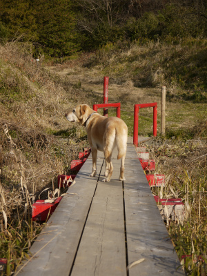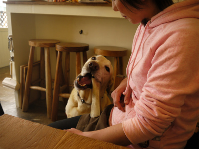 後ろで困った顔は ハピラブ保護犬『ロシナンテ』