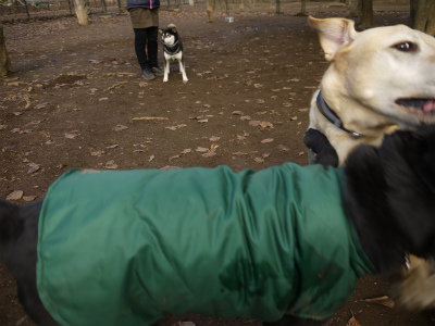 後ろで困った顔は ハピラブ保護犬『ロシナンテ』